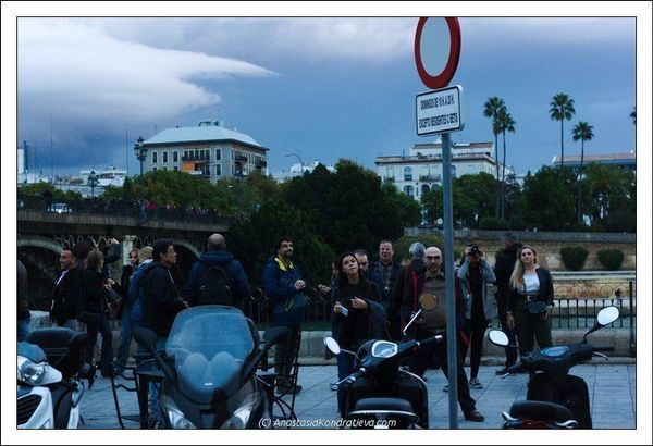 Recorrimos la calle Alfarería, bajamos por el callejon de la Inquisición y pudimos fotografiar el puente de Triana desde el paseo de la O y desde arriba. En esta ocasión habían varias personas nuevas de diferentes países del mundo. Algunos de ellos como llevaban ya un tiempo residiendo en Sevilla y otros simplemente estaban de paso. También pudimos disfrutar de la compañía de algunos de los asiduos como Maribel, JoseMa y Jesús. Éste último llegó un poquito tarde y gracias a la insistencia y a la suerte pudo encontrarnos a lo largo del recorrido (¡Menos mal que los lugares emblemáticos de Tirana están más o menos cerquita) lo cual es de agradecer.